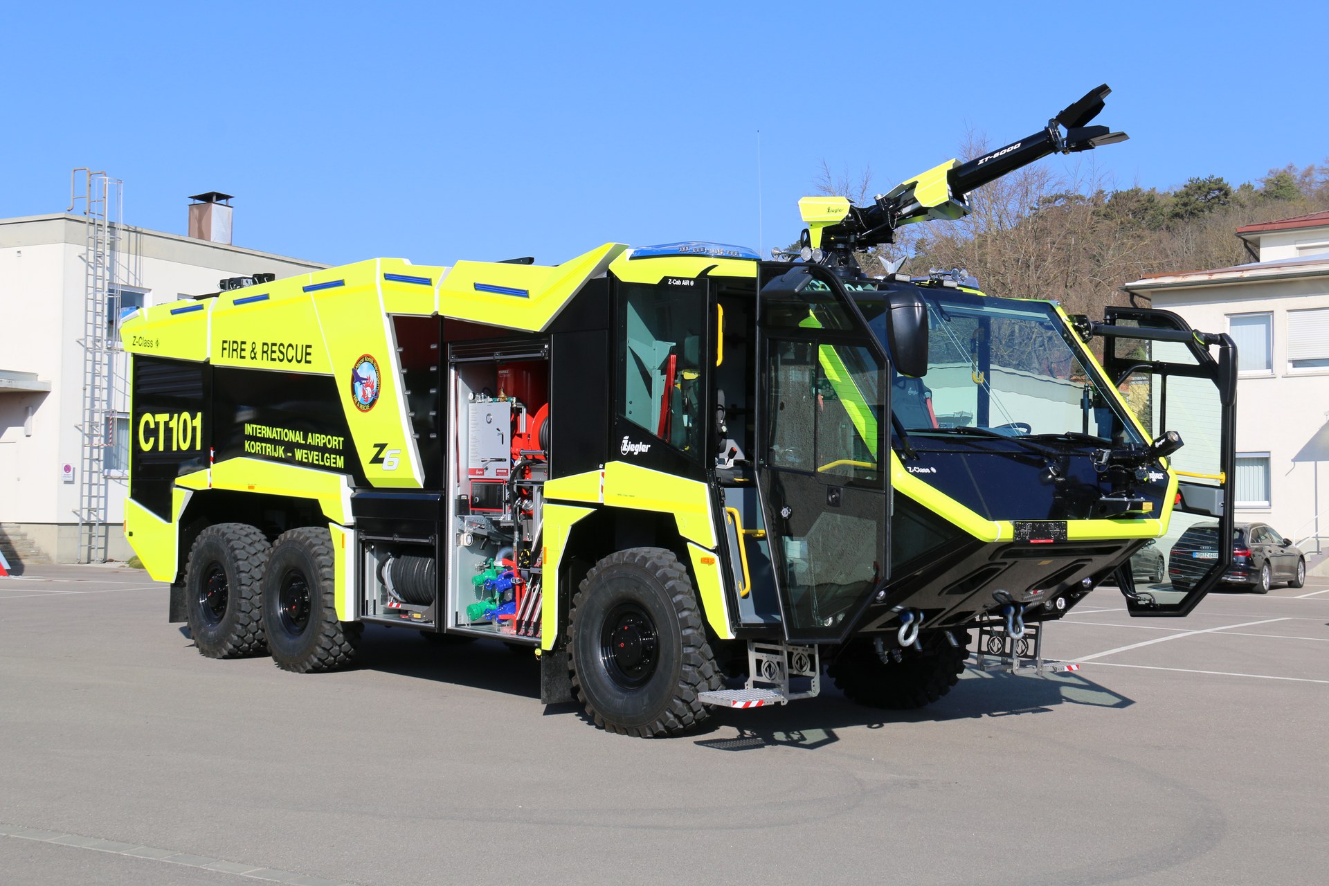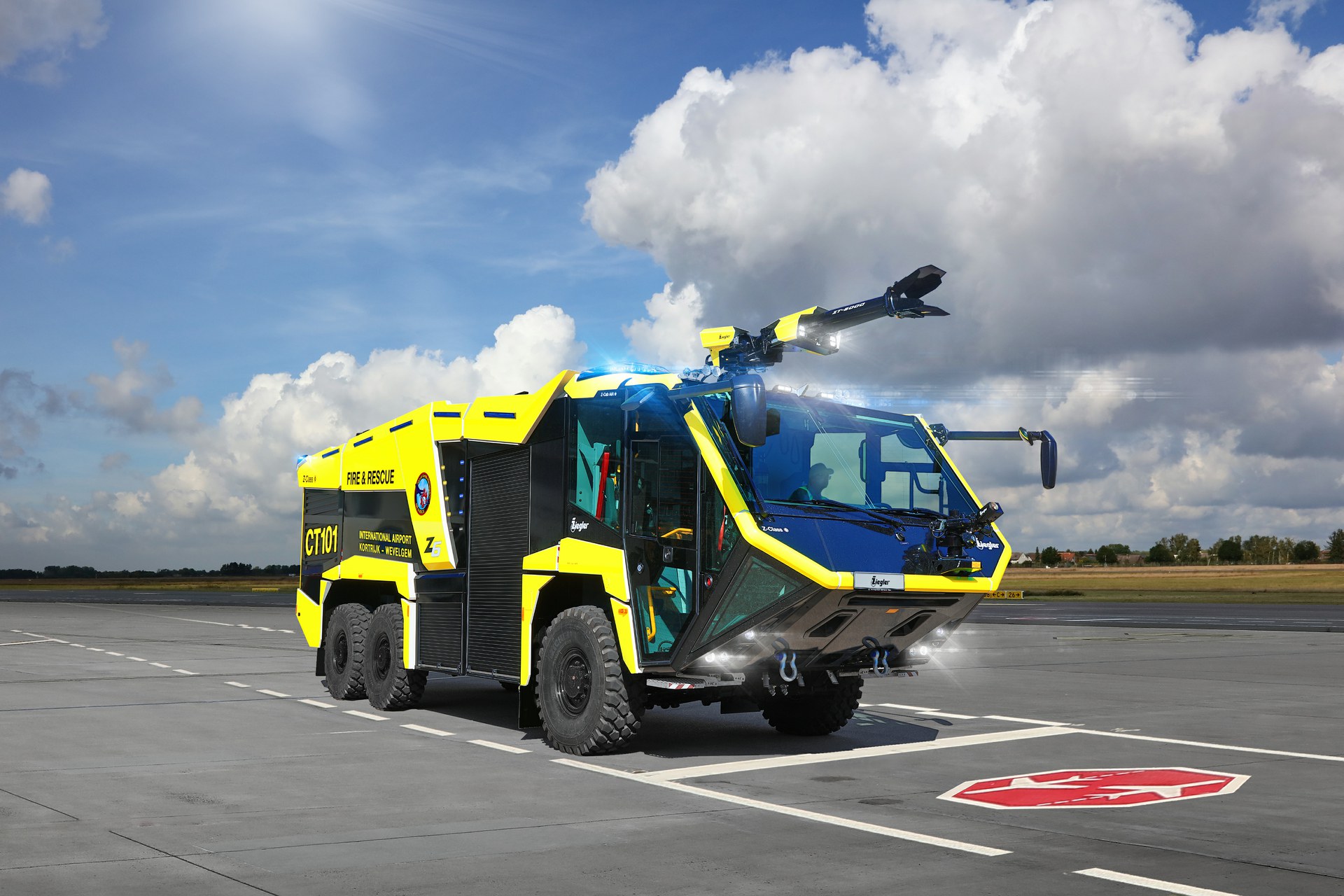 De manschappen hebben met deze crashtender 13.000 l bluswater, 1.500 l schuim en 250 kg bluspoeder een enorme bluskracht tot hun beschikking. De Ziegler FPN 10-8.000 voorziet de monitor (de nieuw ontwikkelde ZT-6000 dakmonitor),de bumpermonitor, de aanvalshaspels en het zelfbeschermingssysteem van bluskracht. De Z-Cab Air is gecertificeerd volgens ECE R 29-3 en garandeert daarmee de hoogste bescherming van de inzittenden. Het voertuig wordt bestuurd en bediend via het nieuwe intuïtieve bedieningsconcept Z-Control.