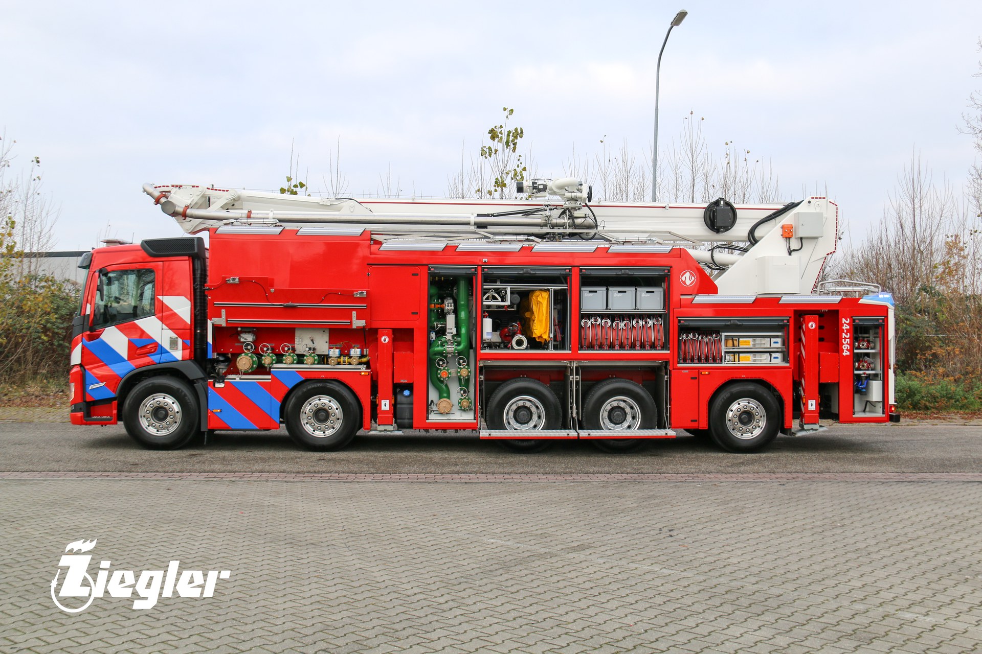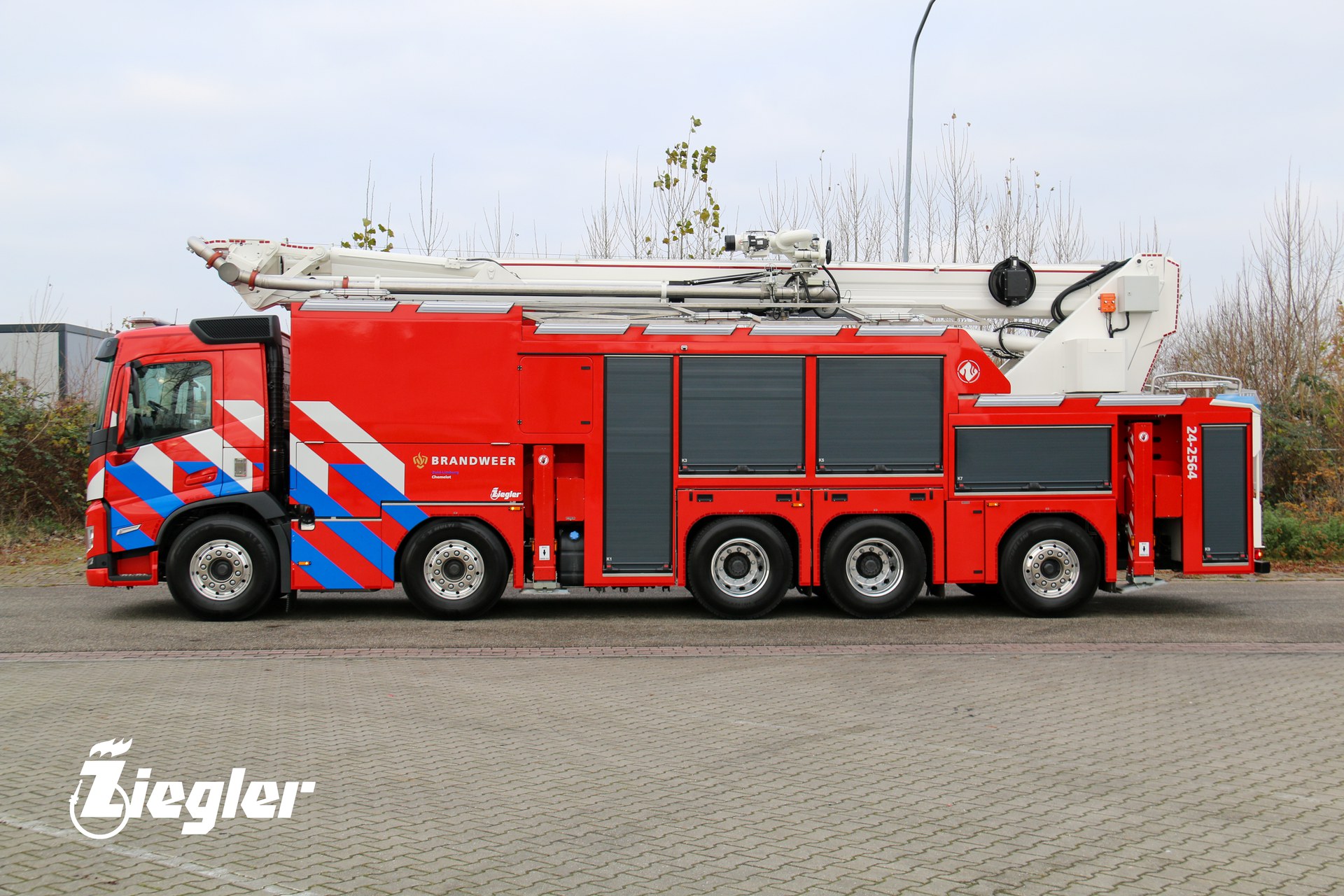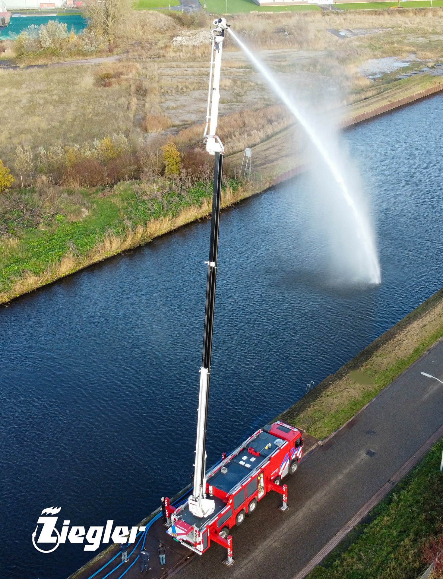 Rik Feijen, Account Manager Ziegler: ‘Met een lengte van twaalf meter is het de grootste schuimblusser die wij ooit geproduceerd hebben in Winschoten. Hier zijn wij natuurlijk enorm trots op. Het voertuig is voorzien van het Ziegler Z-PF schuimbijmengsysteem. Dit systeem is uniek binnen de brandweerindustrie. Dankzij een speciaal gevormd inspuitpunt en een innovatieve mengbuis is een perfecte schuimbijmenging gegarandeerd, ongeacht het merk, type of viscositeit van het (fluorvrij) schuim. Klaar voor de toekomst dus!